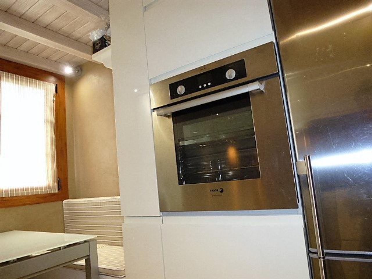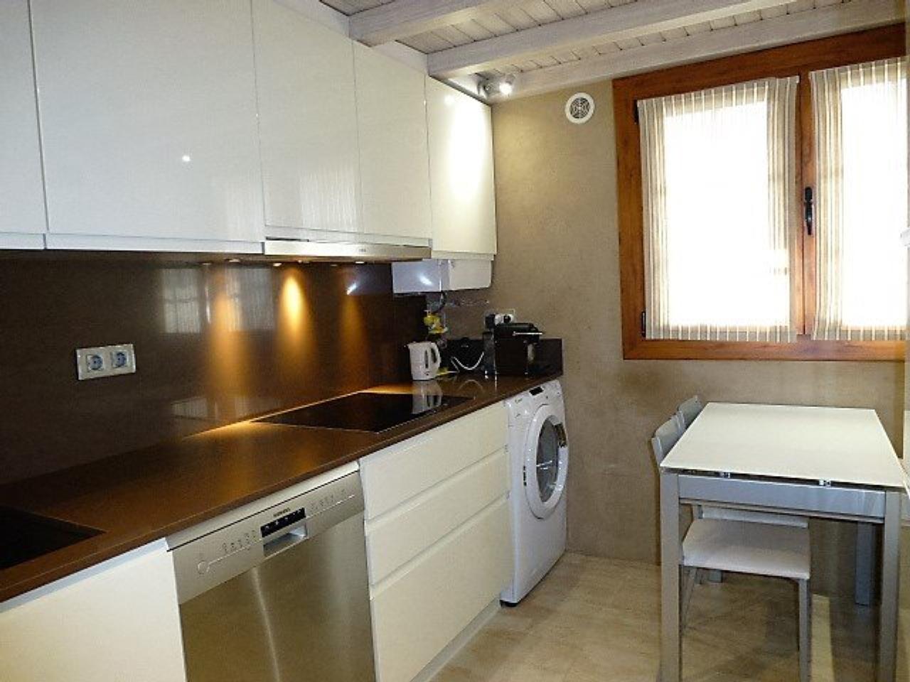 La cuisine est fermée avec un petit bureau. La salle à manger bénéficie d´un gaz et d´un accès à la terrasse où vous pourrez profiter d´une vue imprenable sur la vallée.