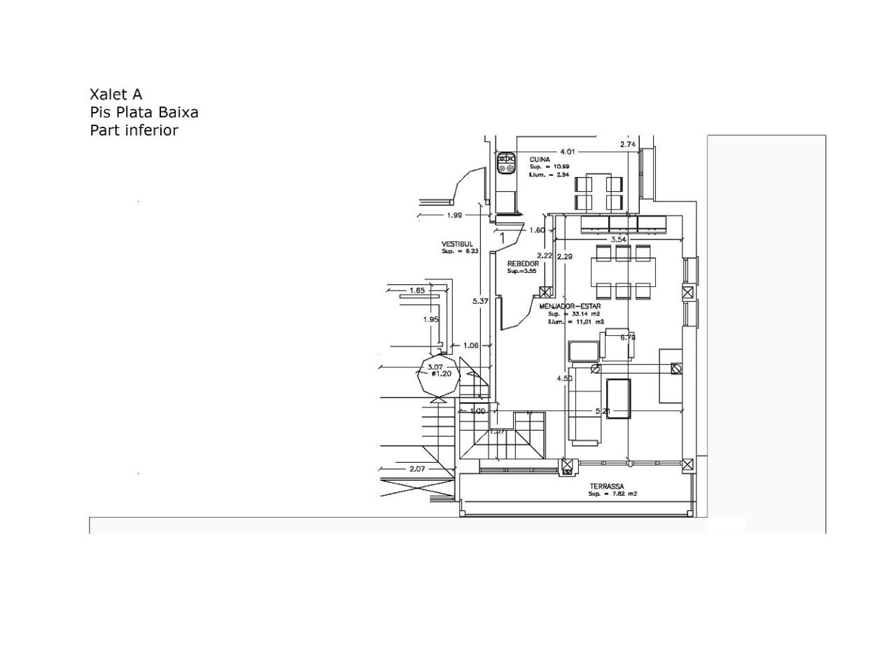 112,30 m2: saló-menjador, cuina amb office, terrassa (3,5 m2), 3 hab., 2 b..