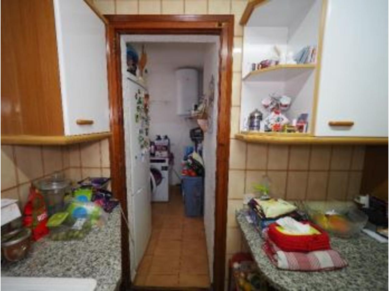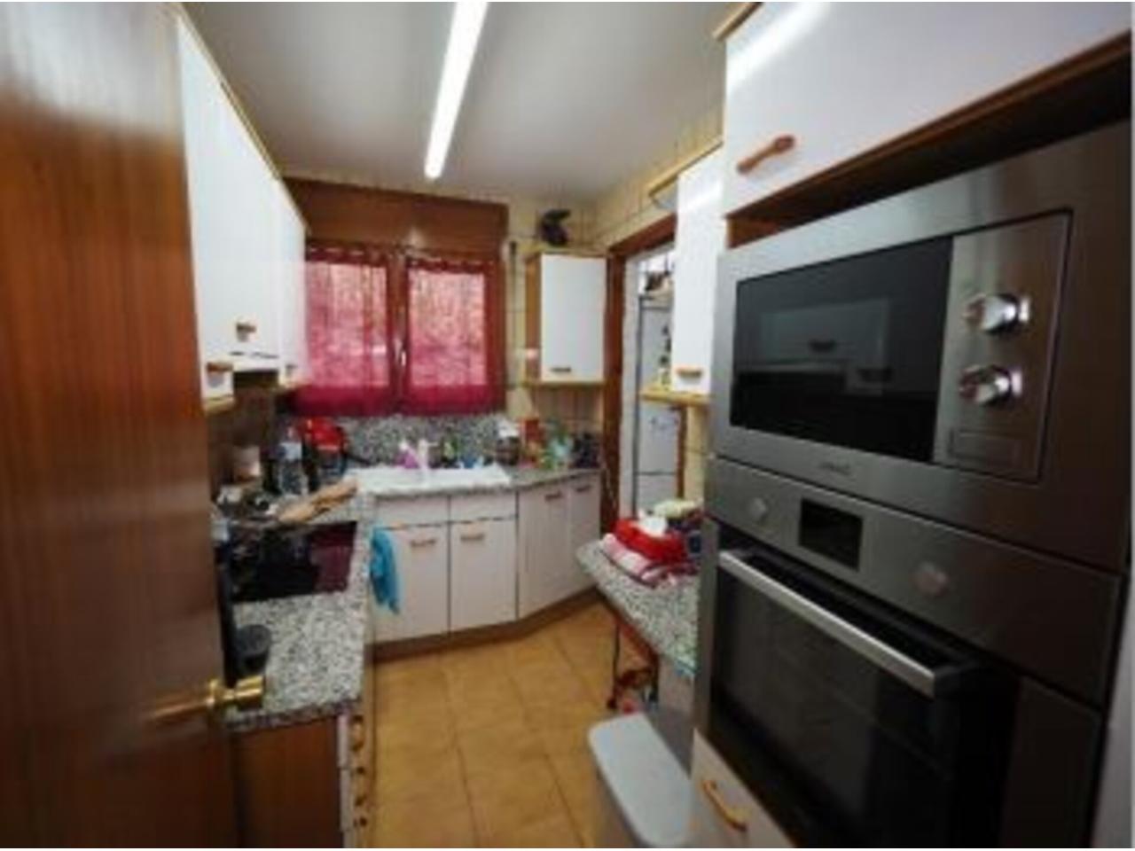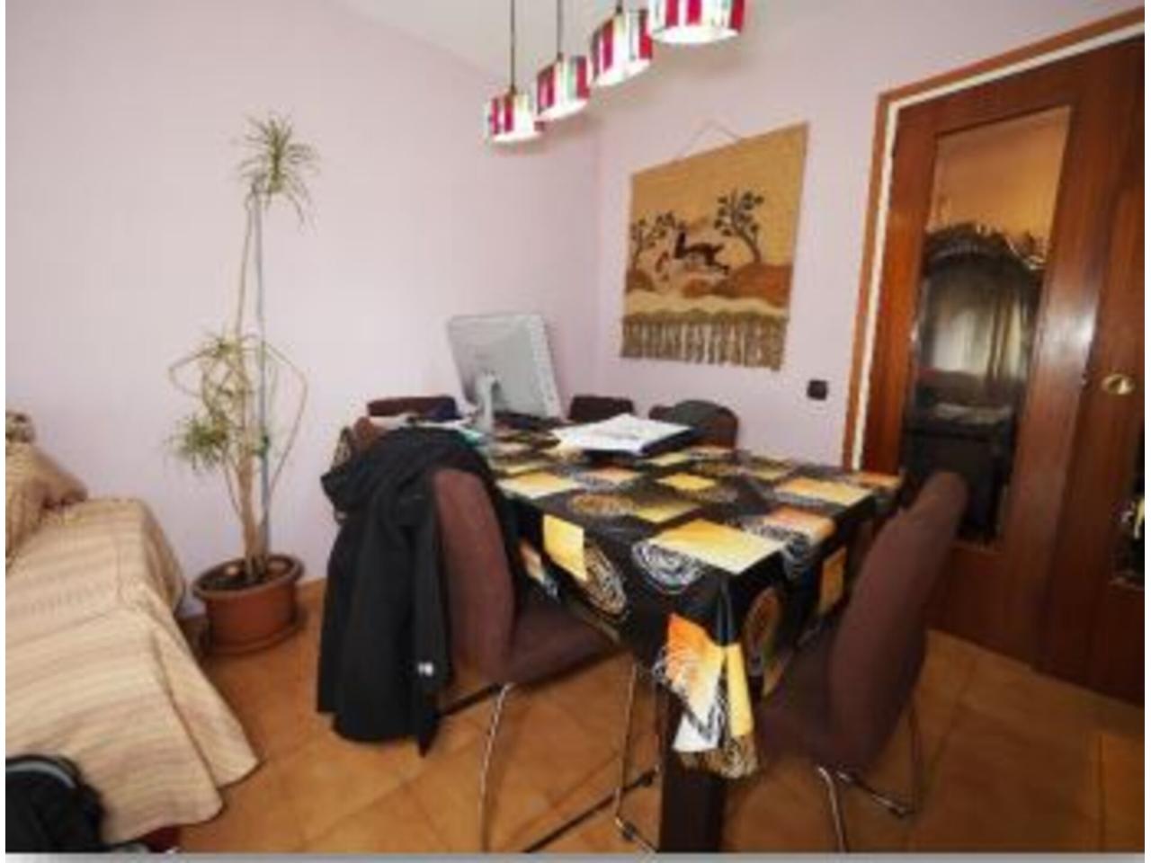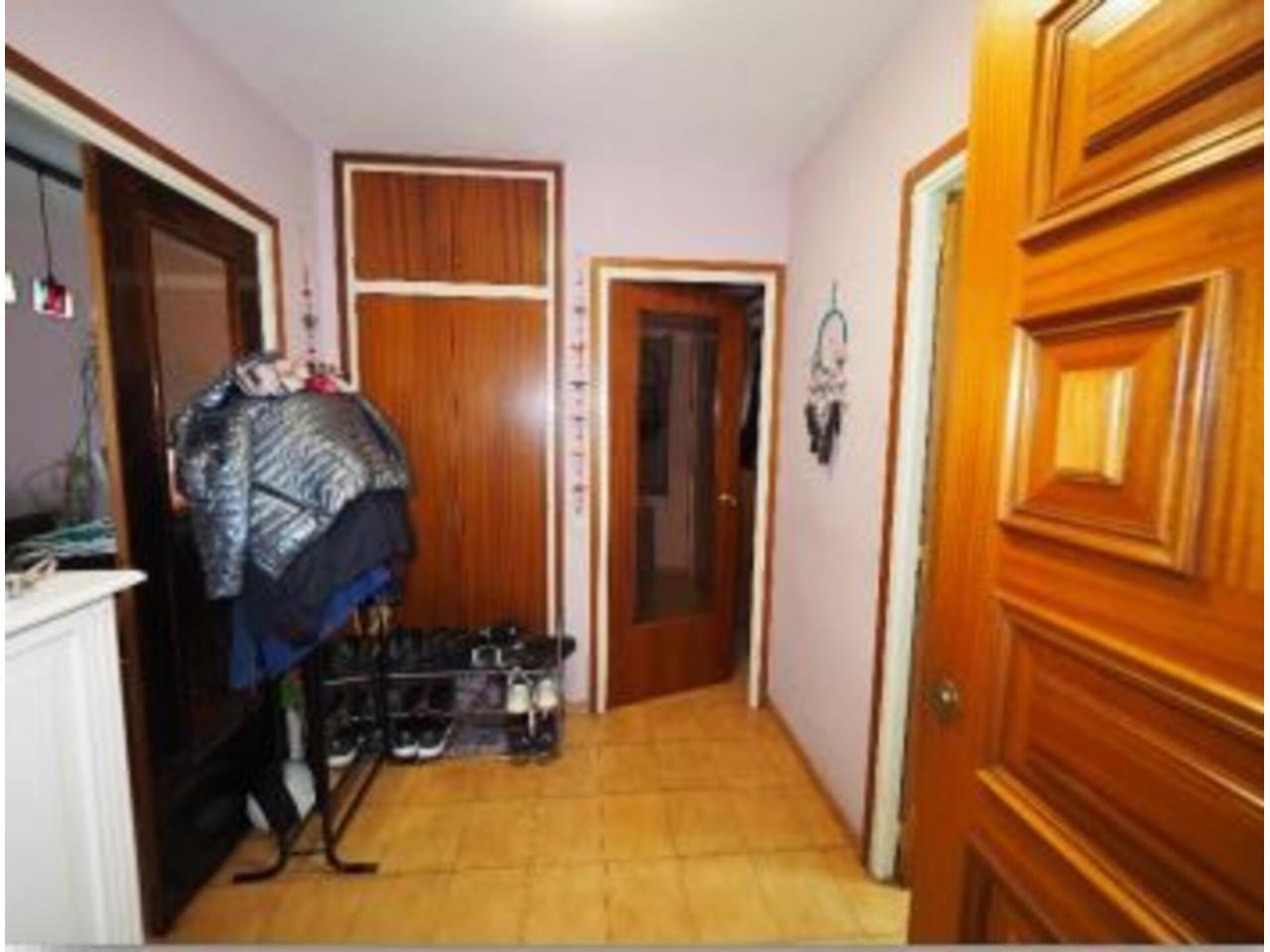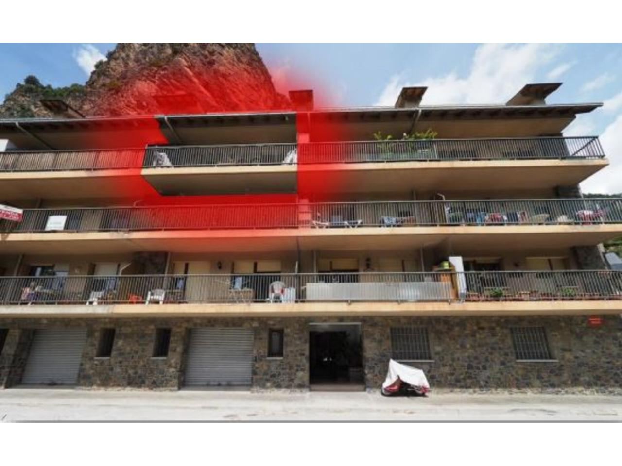 La distribució interior de l´apartament és la següent: A l´entrada trobem un ampli rebedor, amb un armari de paret al davant, i una porta al distribuïdor; per la banda dreta accedim a la cuina a través d´una porta corredissa de fusta i vidre; i per la banda dreta, al saló-menjador, a través d´una obertura sense porta. El saló-menjador, de forma rectangular, dóna accés a la terrassa de l´apartament, d´una superfície de gaire bé 10 m2 , per accedir-hi disposem d´una porta de dues fulles, i al seu costat, una finestra també de dues fulles. Tota la fusteria exterior és de fusta, amb doble vidre. L´orientació de la terrassa, que dóna a la façana principal de l´edifici, és Sud-est, amb sol i vistes sobre la vall. Accedint a la cuina des del rebedor, trobem que el mobiliari es troba a banda i banda d´aquesta, amb una finestra central a la part posterior de l´edifici i una porta lateral al safareig, de bones dimensions, amb una finestra també orientada a la part posterior de l´edifici. Des del distribuïdor, amb forma de ela, trobem dos dormitoris individuals, amb armari encastat al primer i de paret al segon i finestres a la part posterior de l´edifici; a continuació, el bany, amb banyera, terra de gres i enrajolat fins al sostre. Al final del passadís—distribuïdor trobem el dormitori principal, amb armari de paret i accés a la terrassa que comparteix amb el saló; amb porta de dues fulles i una finestra d´una única fulla. El terra és de gres. L´alçada dels sostres és de 2,47 metres, excepte al bany que és de 2,20.